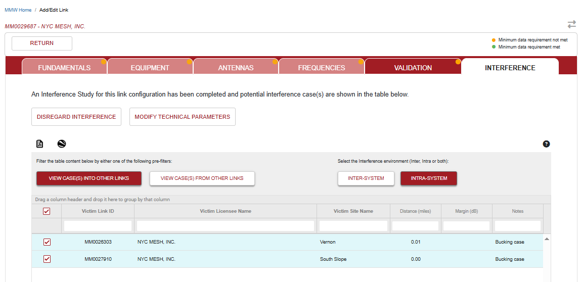 If Micronet has any issues with the application (typically due to interference), we will get an e-mail to go back into the platform to manually approve the interference risk in order to move forward.