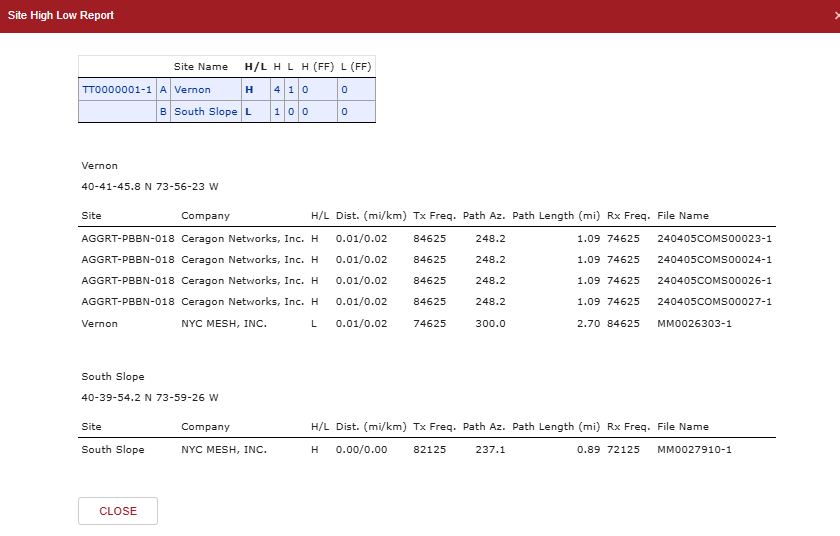 The dashboard has a "High / Low Report" that allows you to see potentially interfering antennas (not just our own, but other companies too) to pick a frequency that will avoid conflicts and interference.