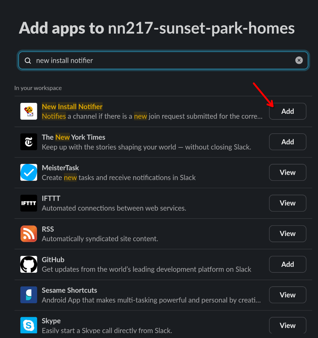 1. Go to the channel and add the @New Install Notifier app